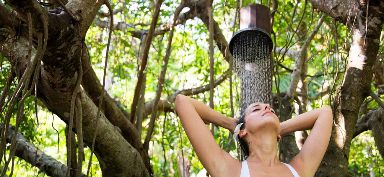 There's something incredibly refreshing and invigorating about showering around greenery and the soothing sounds of nature.