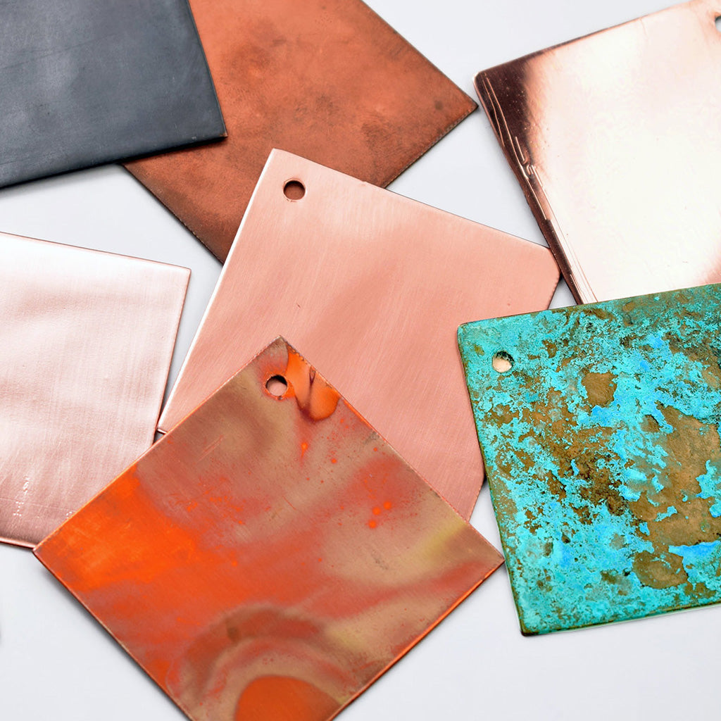 Our standard finishes tile set includes: Natural Copper, Matt Lacquered, Satin Lacquered, and High Gloss Lacquered.