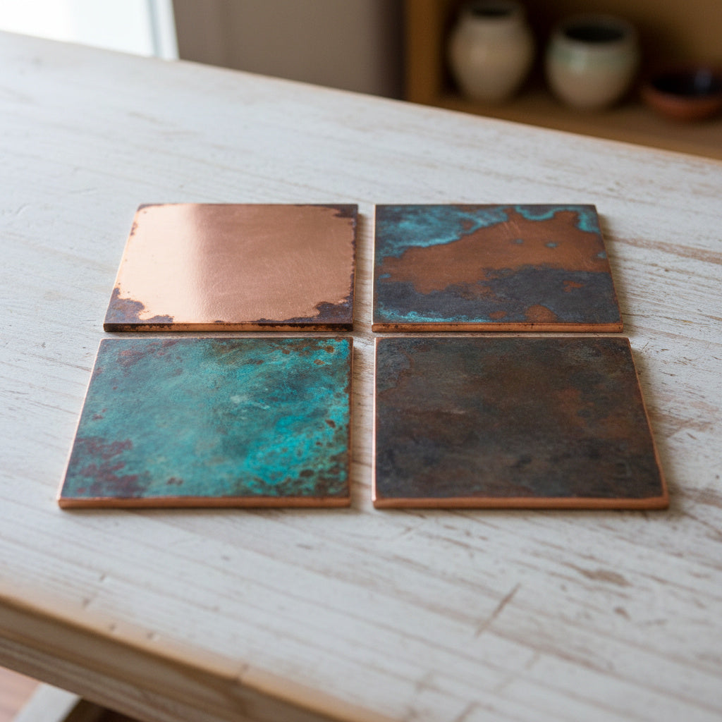 Verdigris Copper – hand-treated patina with blue-green tones (premium)